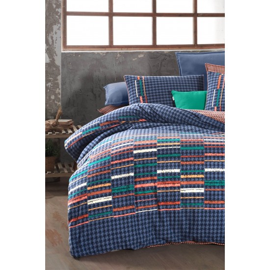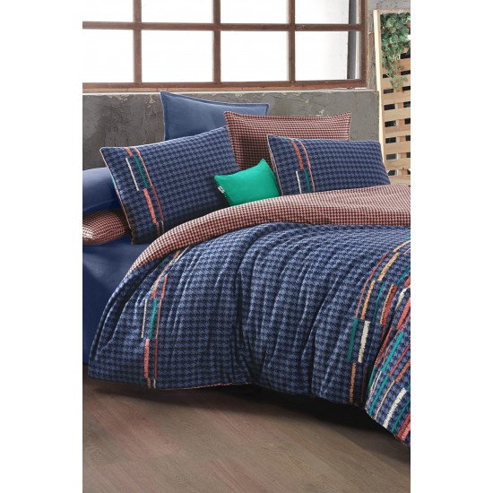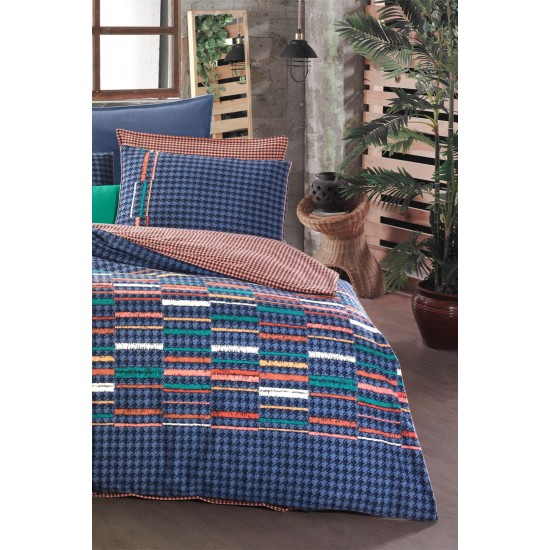 Layra Mavi Çift Kişilik %100 Pamuk Flanel (pazen) Nevresim Takımı
