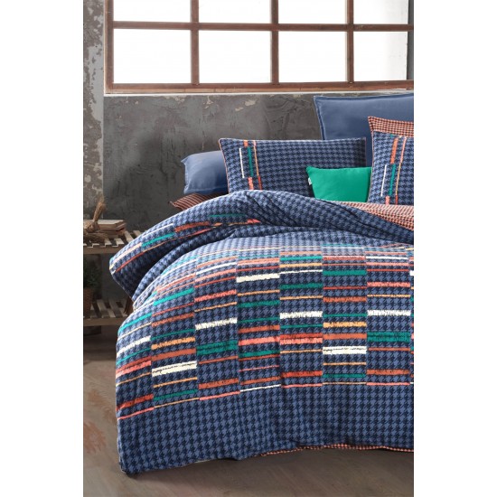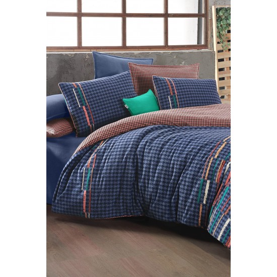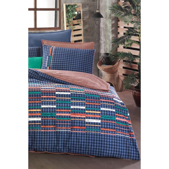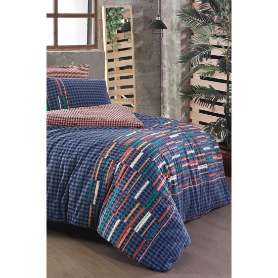 Layra Mavi Tek Kişilik %100 Pamuk Flanel (pazen) Nevresim Takımı